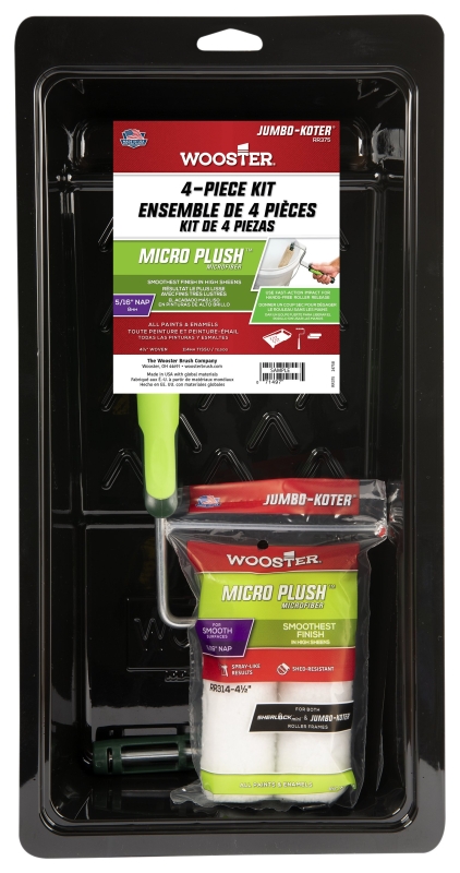 Made from a professional, white microfiber fabric, WOOSTER micro plush rollers create a smooth, even finish with no stipple. Their tiny fibers perform well with all paints and enamels including challenging low VOC, fast-drying and deep-color applications. In fact, because micro plush is capable of achieving spray-like results, these rollers are also a popular choice for applying varnishes to surfaces such as cabinets and doors.