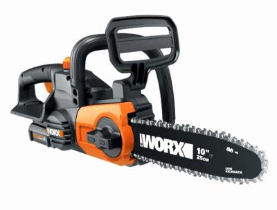 The Worx 20 V 2-in-1 cordless pole saw is an innovative tool that makes hard-to-reach cutting jobs easier and safer. It is ideal for powering through tough cutting jobs, thanks to its lightweight, compact design with its 10 in bar and weighing in at only 10.4 lb including the detachable extension pole. The extension pole provides 10 ft of additional reach so hard-to-reach branches are no match. Remove the pole and use the chainsaw for normal cutting projects around your yard. The patented tool-free auto chain tension system prevents over-tightening and keeps optimal chain tension while cutting. The automatic lubrication system with oil level indicator is a useful feature whether you are doing a quick clean up or a pruning task. The overmold soft grip handle reduces fatigue and improves your grip as you power through cuts. The Pole saw is part of the 20 V power share platform that lets you share batteries among multiple 20 V tools, saving you time and money.