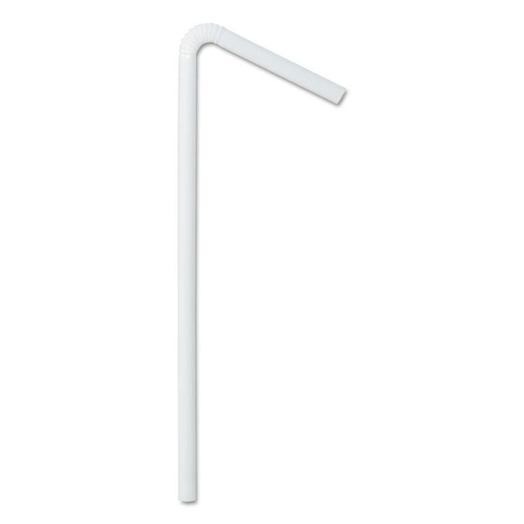 Convenient flex straws are individually wrapped for increased sanitation. Straws are designed for cold applications only--perfect for soda or juice. Easy to use with taller cups. Flex straws bend, making them easy to reach and easier to drink from. Material(s): Polypropylene; Color(s): White; Size: 7 3/4".