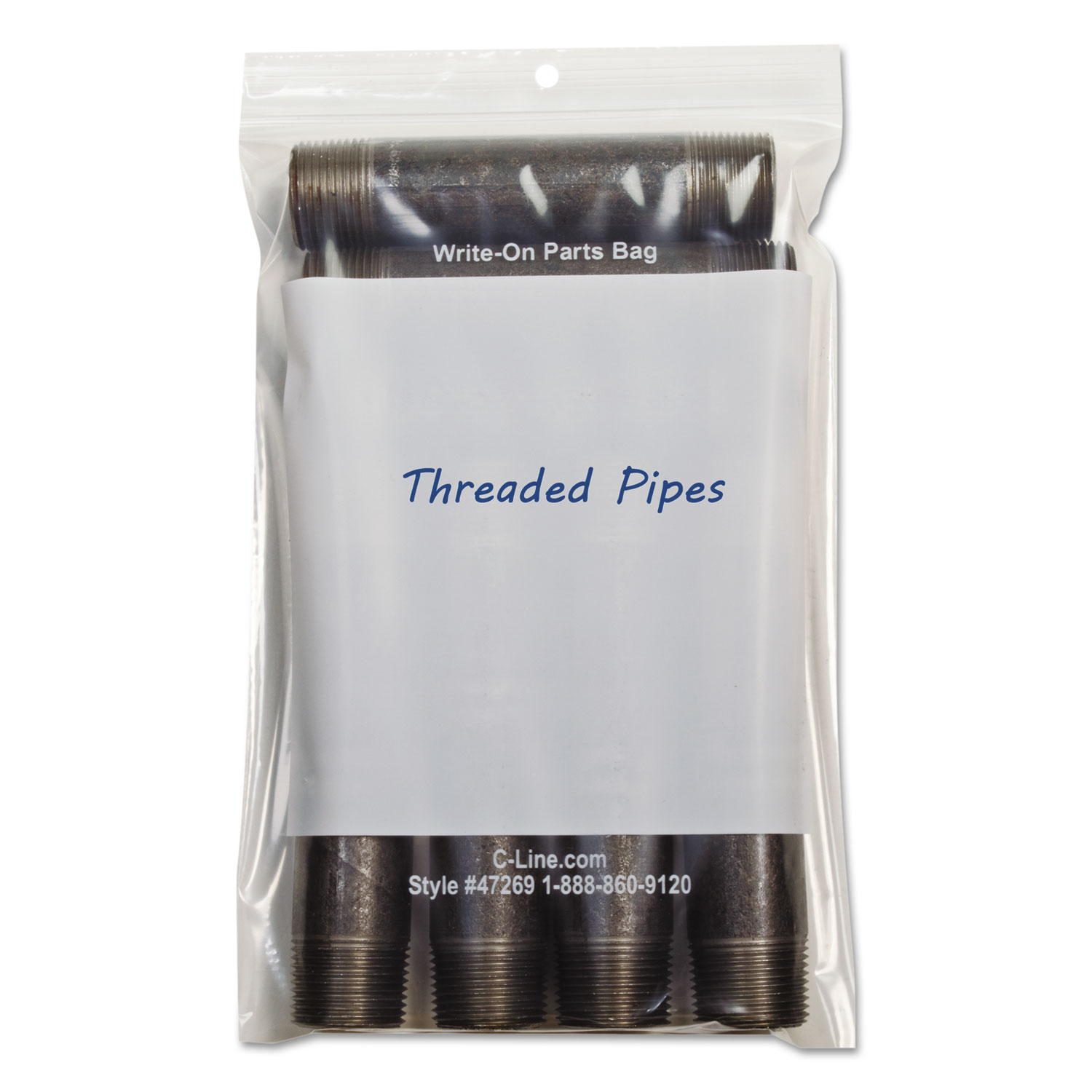 Perfect for storing items, such as rubber bands, screws, or push pins. Make identification of the contents easier by labeling the bags.The write-on panel, located on one side of the bag, works with both pen and marker. Clear, poly bags have a zip-close seal that makes them waterproof, airtight and reusable. Application: Storage; Thickness: 2 mil; Material(s): Polyethylene; Width: 6".