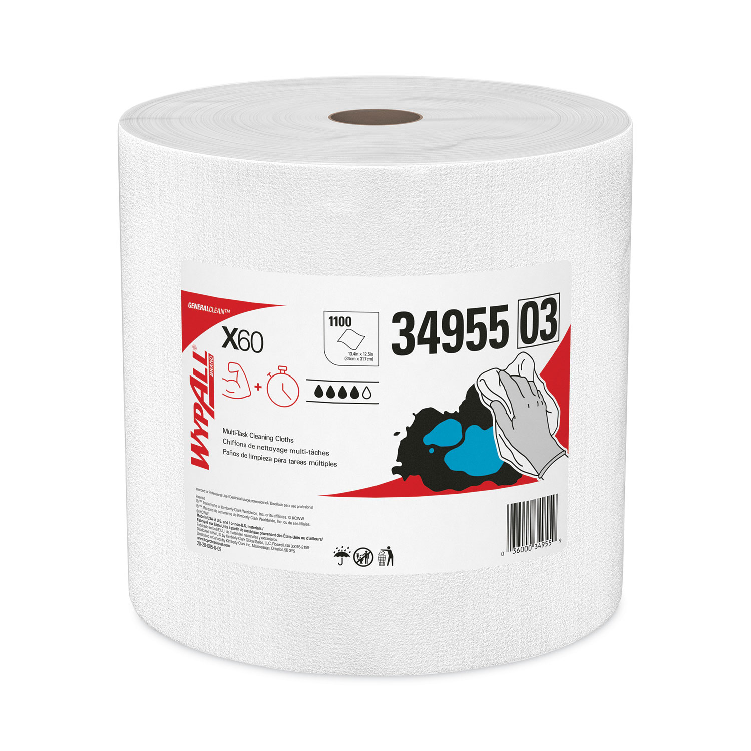 WypAll X60 Cloths absorb more water than rags. They bring the absorbing power of HydroKnit technology (for superior absorbency) to a lighter-weight cloth. Designed to outperform laundered rags, the clothes help raise the standard for general-purpose cloths at a terrific value. They don't use adhesives or binders, so they'll leave no residue behind and they're reinforced for strength when wet or dry. These cleaning cloths are so sturdy that they can often be used more than once (once you've used them a few times, they're disposable). They're designed to reduce waste so you spend less. Jumbo Roll. Towel/Wipe Type: Dry Wipes; Application: General Purpose; Hand Washing; Applicable Material: Metal; Plastic; Stainless Steel; Material(s): HYDROKNIT*.